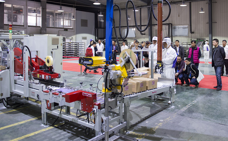 参观瑞华包装车间最新引进的台湾自动包装流水线